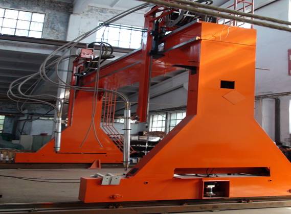 ● 龍門所配二臺焊機、保護氣氣瓶(至少2個)、控制柜等均放在龍門兩側托架上,隨龍門一起移動,進龍門的外部供電線纜采用滑線供給,使得龍門移動范圍加大。