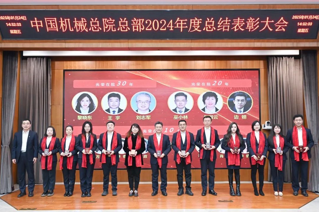 大會現(xiàn)場氣氛喜慶熱烈。《增信賦能 攜手同行》短片,回顧2024年豐碩成果、展望2025年發(fā)展前景。各部門以視頻方式送來新春祝福。大會向光榮在院30年、20年、10年的干部職工頒發(fā)紀(jì)念章;對涌現(xiàn)出的先進集體和優(yōu)秀個人進行了表彰。集團領(lǐng)導(dǎo)為獲獎代表頒獎,獲獎代表感言分享成長喜悅、表達美好祝福。